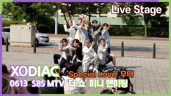 [뉴스인스타 양철수기자] 6월 13일(화) 오후, 서울시 마포구 상암동 물빛문화공원에서 그룹 소디엑(XODIAC)의 미니 팬미팅이 열려 렉스, 현식, 범수, 웨인, 씽, 다빈, 자얀, 규민, 리오가 '스페셜 러브' 무대를 펼치고 있다.