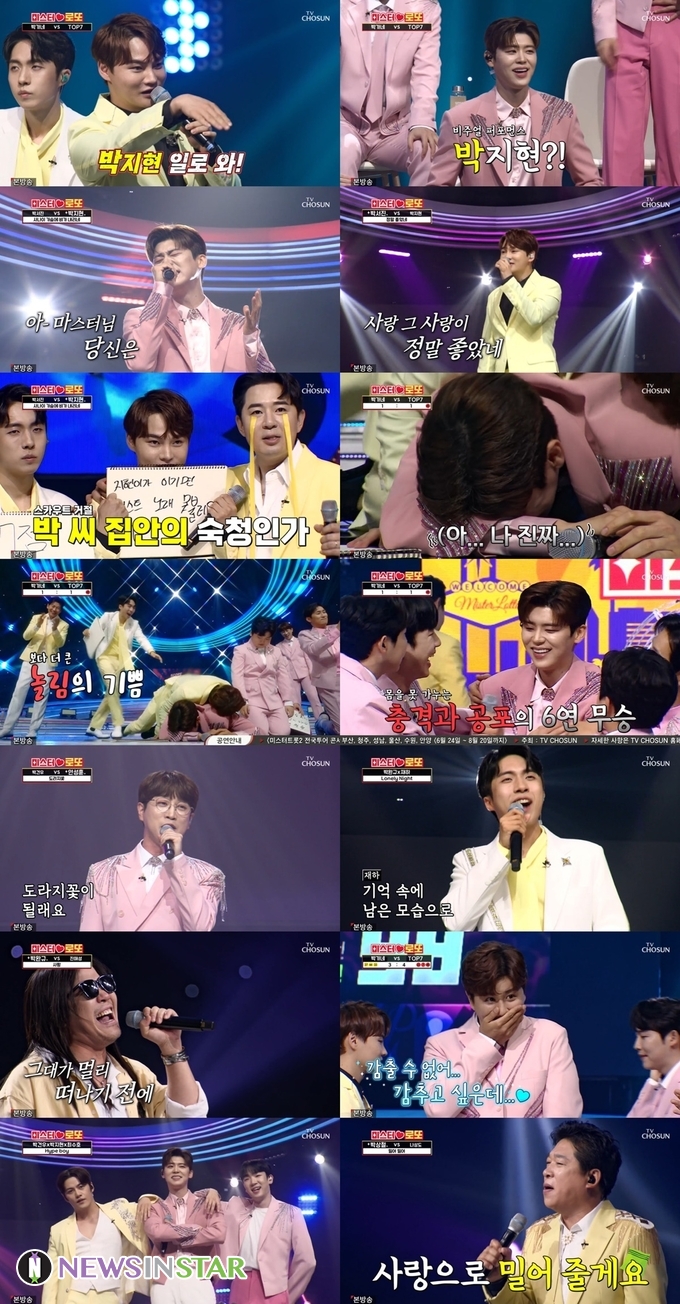 먼저 무대에 오른 박서진은 '정말 좋았네'를 열창, 98점이라는 높은 점수를 받으며 박지현을 잔뜩 긴장하게 했다. 뒤이어 떨리는 마음으로 무대에 오른 박지현은 '사나이 가슴에 비만 내리네'를 불렀고 96점을 받으며 또 다시 패배하고 말았다. 6연속 무승, 다시 한 번 첫 승이 좌절되자 박지현은 무대 위에서 눈물을 글썽거려 안방에 짠함을 안겼다. 급기야 박지현은 무대 위에 엎드려 패배의 쓴맛을 되새기기까지 했다. 박지현이 다음 주에는 첫 승을 거둘 수 있을지, 아니면 7연속 무승에 또 한 번 좌절하게 될지가 초미의 관심사로 떠오르게 됐다.