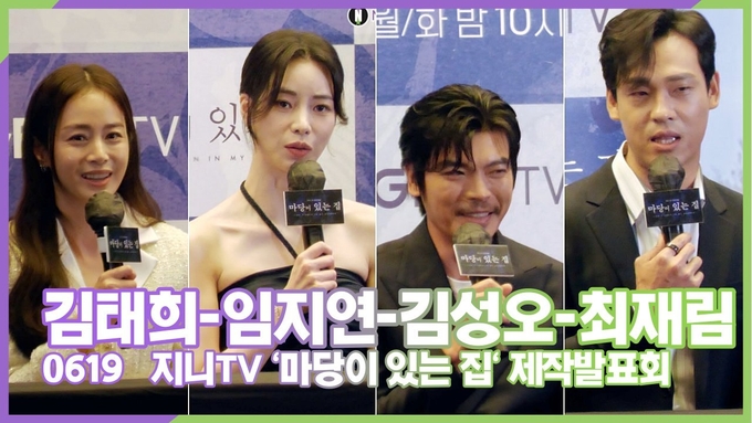 [뉴스인스타 양철수기자] 6월 19일(월) 오후, 서울시 마포구 상암동 스탠포드호텔 서울에서 진행되는 지니 TV 오리지널 서스펜스 스릴러 '마당이 있는 집' 제작발표회가 열려 배우 김태희, 임지연, 김성오, 최재림, 정지현 감독이 참석해 포토타임을 갖고 있다.