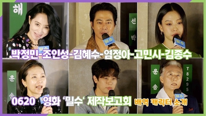 [뉴스인스타 양철수기자] 6월 20일(화) 오전, 서울시 광진구 롯데시네마 건대입구에서 영화 '밀수' 제작보고회가 열려 배우 김혜수, 염정아, 조인성, 박정민, 고민시, 김종수, 류승완 감독이 참석해 배역 캐릭터를 소개하고 있다.