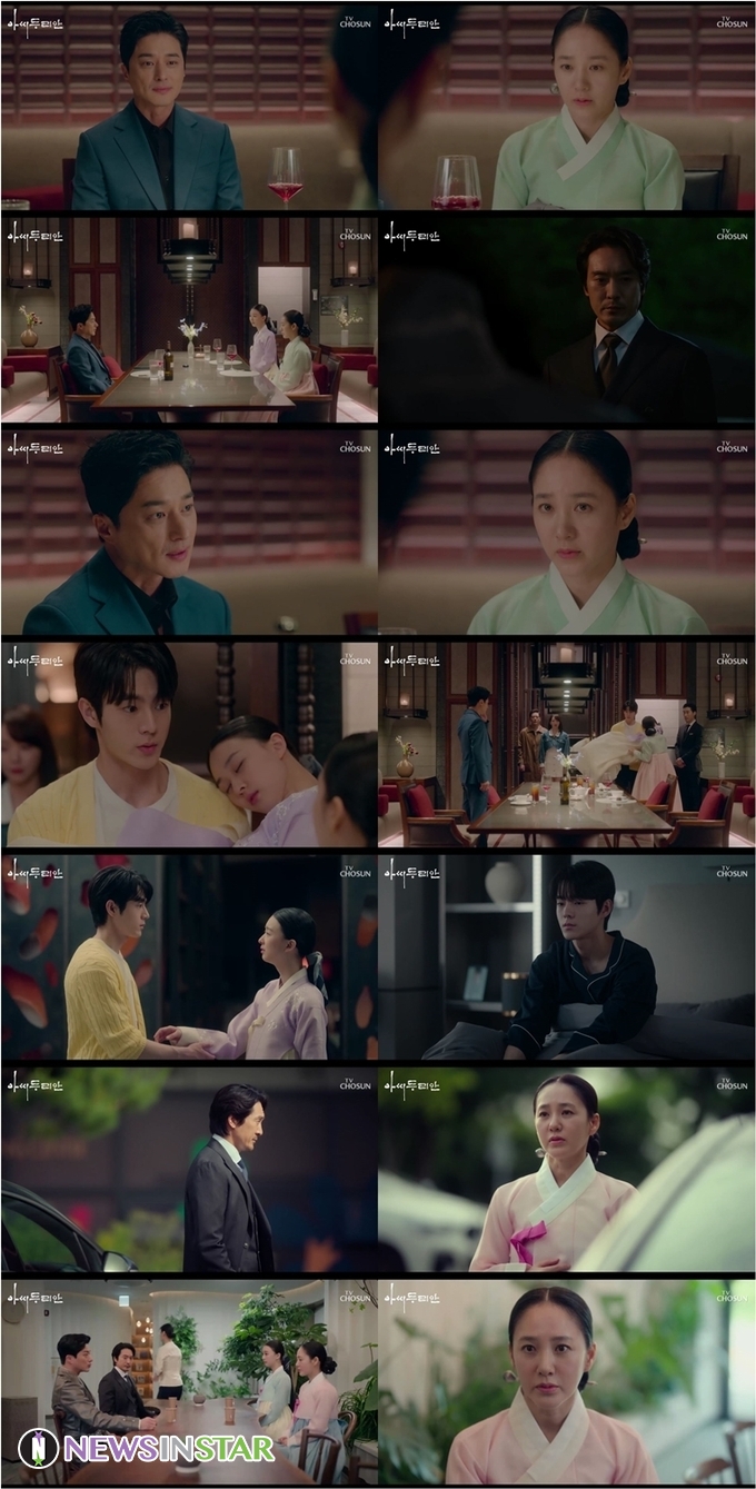그런 가운데 단등명(유정후)과 김소저, 아일라(김채은)의 삼각 로맨스도 미묘한 시작을 알렸다. 단치정이 건넨 와인을 마시다가 취한 김소저는 화장실 앞에서 단등명과 마주쳤고, 몽롱한 취기에 단등명을 보자 애틋한 절절함이 살아났던 상태. 하지만 단등명만을 바라보며 간절함을 담아 손을 뻗었던 김소저는 단등명을 잡으려 하던 순간 무너지듯 정신을 잃었고, 이때 단등명이 김소저를 부축해 번쩍 안아 들어 지켜보던 아일라를 놀라게 했다. 단등명은 김소저를 안아 차에 앉혀주고 난 뒤에도 잠시 김소저를 바라보는 모습으로 아일라를 의아하게 했다.