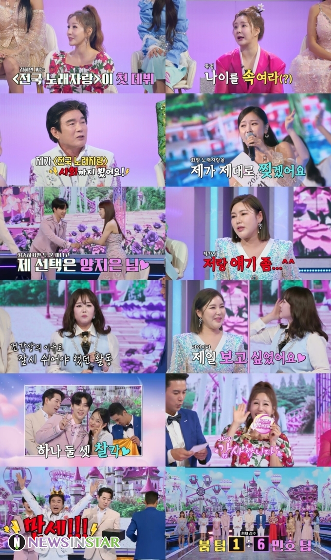 이날 1대1 데스매치에 들어가기 전 김혜연, 금잔디, 배일호가 ‘전국 노래자랑’과 관련된 에피소드를 들려줬다. ‘전국 노래자랑’으로 데뷔를 한 김혜연은 “무대 오르기 바로 전날에 노래 선곡이 바뀌었다. 노래를 잘 못했지만 인기상을 받았었다”고 말하며 예나 지금이나 넘치는 끼를 자랑했다. 금잔디는 고3 당시에 ‘전국 노래자랑’ 출전을 위해 변장을 했었다고. 금잔디는 “고등학생은 출전을 못했었다. 그래서 어른처럼 보이려고 동네 언니들이 입는 제복에 빨간 립스틱을 바르고 출전을 했었다”고 회상했다. 특히 배일호는 ‘전국 노래자랑’에서 FD로 5년을 일했던 이력을 전했다. 그러면서 “어느날 송해 선생님께 갑자기 일이 생겨서 급하게 저랑 현철 선배님이 MC를 봤었다. 그런데 방송에는 안 나갔다”면서 그 당시 어설펐던 진행을 재연해 큰 웃음을 줬다.