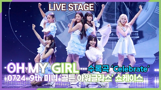 [케이팝인스타 양철수기자] 7월 24일(월) 오후, 서울시 광진구 광장동 예스24 라이브홀에서 진행된 그룹 오마이걸(OH MY GIRL) 아홉번째 미니 앨범 '골든 아워글라스(Golden Hourglass)' 발매 기념 미디어 쇼케이스가 열려 아린, 승희, 유빈, 효정, 유아, 미미가 참석해 수록곡 'Celebrate' 무대를 선보이고 있다.