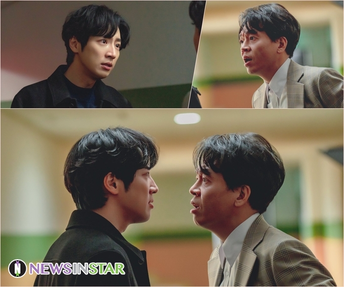 공개된 스틸에는 재능 있는 선수의 실력을 단기간에 뽑아낸 뒤 은퇴시키는 프로 은퇴꾼 S&P 스포츠 에이전트 김태영(이상엽 분)과 최강 빌런 김오복의 대치하는 모습이 담겨 있다.