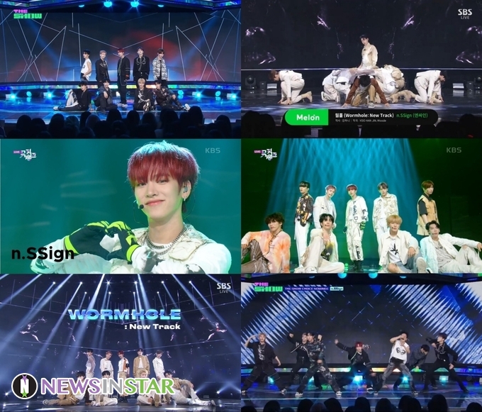 엔싸인은 지난 15일, 18일, 20일 방송된 SBS M ‘더쇼’, KBS 2TV ‘뮤직뱅크’, SBS ‘인기가요’에 출연해 데뷔 앨범 ‘BIRTH OF COSMO(버스 오브 코스모)’의 타이틀곡 ‘웜홀 (Wormhole: New Track)(웜홀: 뉴 트랙)’ 무대를 선보였다.