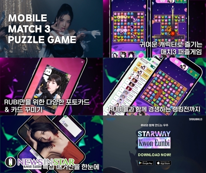 소프트웨어 개발 기업 스노우볼스(SNOWBALLS)는 지난 29일 구글 플레이스토어, 애플 앱스토어를 통해 '스타웨이 권은비(STARWAY KWON EUNBI)' 정식 서비스를 시작했다. '스타웨이 권은비'는 똑같은 블록을 3개 이상 연결하는 매치 쓰리 퍼즐 게임으로, 스테이지를 클리어하면 권은비의 다양한 화보를 수집 및 감상할 수 있다.