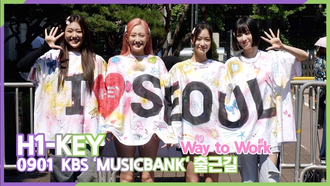 [뉴스인스타 양철수기자] 9월 1일(금) 오전, 서울시 영등포구 여의도 KBS 신관 공개홀에서 열린 KBS '뮤직뱅크' 리허설에 참석하기 위해 그룹 하이키(H1-KEY) 서이, 리이나, 옐, 시탈라가 방송국에 도착해 포즈를 취하고 있다.