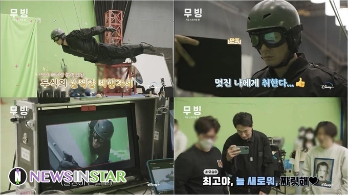 이 가운데, 디즈니+ 공식 유튜브를 통해 공개된 조인성의 ‘초능력 온앤오프’ 속 모습들이 신선한 재미를 선사함과 동시에 완성도 높은 장면을 위한 그의 노력이 엿보여 이목이 쏠린다. 조인성은 본격 촬영을 앞두고 와이어 장비들을 착용하면서 스태프들과 스스럼없이 장난을 치는가 하면, 촬영이 시작된 순간 웃음기를 지운 채 두식으로 돌변해 완벽한 비행자세를 선보여 감탄을 자아낸다.
