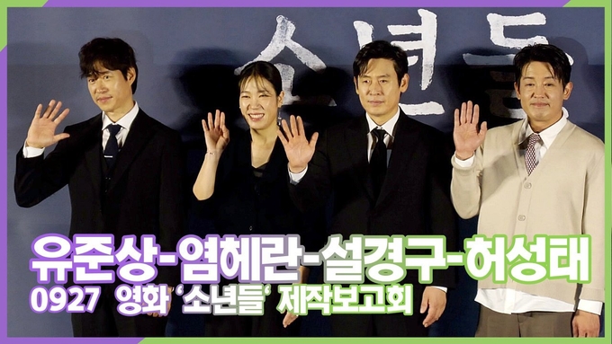 [뉴스인스타 양철수기자] 9월 27일(수) 오후, 서울시 용산구 CGV 용산아이파크몰에서 영화 '소년들' 제작보고회가 열려 배우 설경구, 유준상, 허성태, 염혜란, 정지영 감독이 참석해 포토타임을 갖고 있다.
