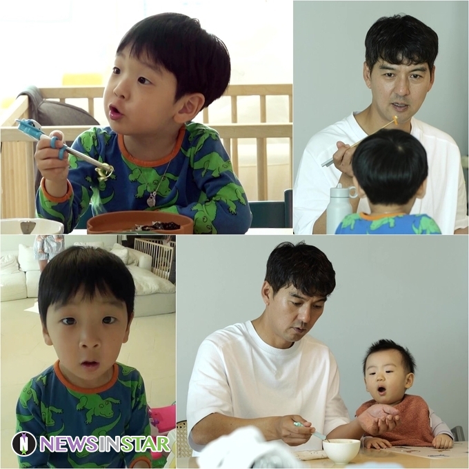 이 가운데 5살 담호가 50살 아빠 이필모에게 도전장을 내밀며 평화로웠던 밥상에 긴장감을 더한다고 해 관심이 집중된다. 담호는 장난기를 발동시키며 아빠 이필모에게 ‘밥 빨리 먹기’로 정면 승부를 신청하고, 아빠 이필모는 한술 더 떠 “다 먹고 머리에 접시 털기”라고 도발해 호락호락하지 않은 대결을 예고한다. 이에 젖 먹던 힘을 다해 폭풍 흡입을 하던 담호는 밥 한 숟가락을 입에 문 채 곁눈질로 이필모를 견제, 기필코 아빠를 이겨보겠다는 귀여운 승부욕으로 보는 이의 미소를 선사한다. 반면 이필모는 행여나 다섯 살 아들에게 질세라 아예 밥그릇에 코를 박고 먹어 웃음을 자아낸다. 그도 잠시, 다섯 살 아들과의 불꽃 튀는 진검승부를 마친 이필모는 "아들한테 절대 지면 안 된다. 내가 이기는 게 담호를 성장시키는 것"이라며 천연덕스럽게 육아의 큰 뜻(?)을 밝혀 폭소를 더한다고.