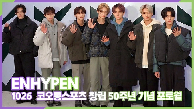 [뉴스인스타 양철수기자] 10월 26일(목) 오후, 서울시 용산구 레이어20에서 코오롱스포츠 창립 50주년 기념 포토월 행사가 열려 그룹 엔하이픈(ENHYPEN) 정원, 희승, 제이, 제이크, 성훈, 선우, 니키가 참석해 포토타임을 갖고 있다.