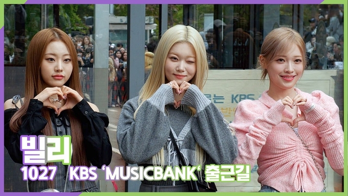 [뉴스인스타 양철수기자] 10월 27일(금) 오전, 서울시 영등포구 여의도 KBS 신관 공개홀에서 생방송으로 진행되는 KBS '뮤직뱅크' 출연을 위해 그룹 빌리(Billlie) 시윤, 션, 츠키, 하람, 하루나 방송국에 도착해 포즈를 취하고 있다.
