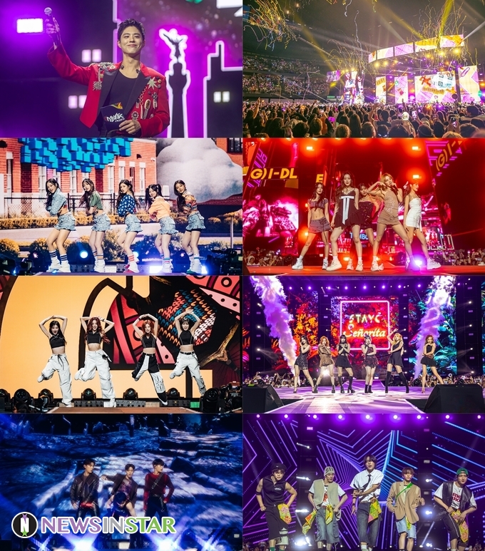 여기에 뉴진스, (여자)아이들, 있지, 스테이씨, AB6IX, TNX 총 6팀의 탄탄한 최강 라인업이 함께 했다. 이날 뉴진스는 ‘하입 보이(Hype Boy)’를 시작으로 분위기를 달궜고, ‘슈퍼 샤이(Super Shy)’, ‘ETA’ 등 상큼한 퍼포먼스로 레전드 무대를 탄생시키며 멕시코 팬들의 큰 함성을 자아냈다.