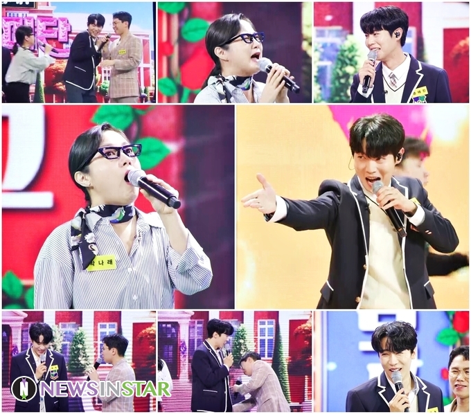 이와 관련 ‘장미남고’ 전교 1등 손태진과 담임 선생님 박나래가 뜻밖의 ‘금지된 사랑’ 무드에 휩싸여 폭소를 자아낸다. 이날 ‘장미여고’ 전설의 복학생으로 등판한 ‘공식 에녹 찐 팬’ 김용임은 “고백할 게 있다. 사실 마음에 둔 사람이 따로 있다”고 말하며, “손태진 너 나와!”를 외쳐 현장을 술렁이게 했다.