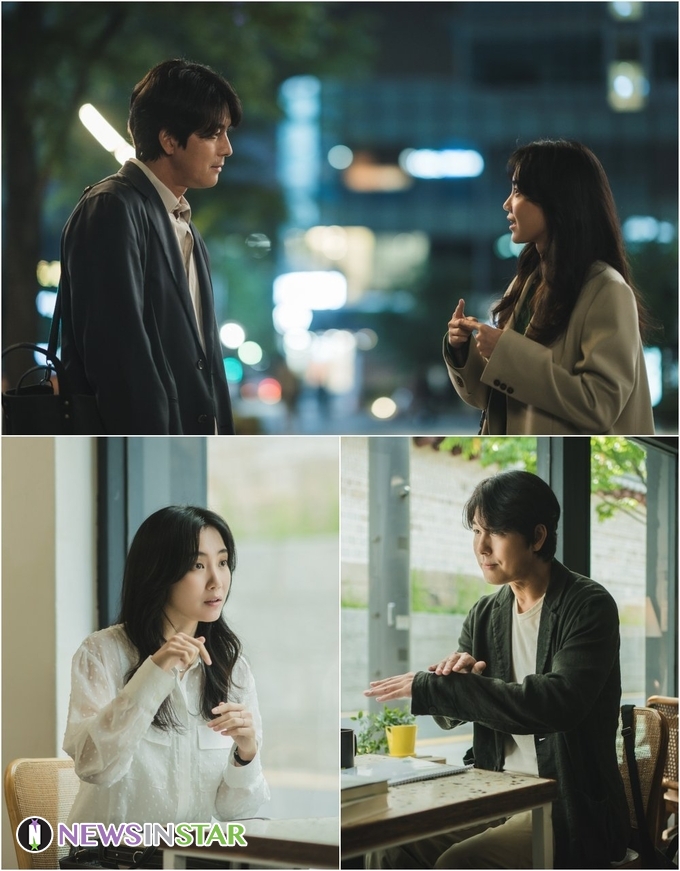 정우성, 신현빈의 감성 시너지가 기대 심리를 자극한 가운데, 캐릭터에 완벽 몰입한 모습이 설렘을 더한다. 그림만이 세상 전부였던 청각장애 화가 차진우와 무명배우 정모은은 서로의 세상에 변화를 일으킨 존재다. 살아온 방식도, 대화법도 다른 두 사람은 서로에게서 낯선 설렘을 느낀다고. 무슨 일인지 병원에서 포착된 정모은. 걱정 가득한 얼굴로 ‘괜찮아요?’라고 적힌 스케치북을 보여주는 차진우의 모습이 눈길을 끈다. 어떤 말보다 진심이 묻어나는 한 문장에 정모은의 얼굴엔 묘한 안도감이 스친다.