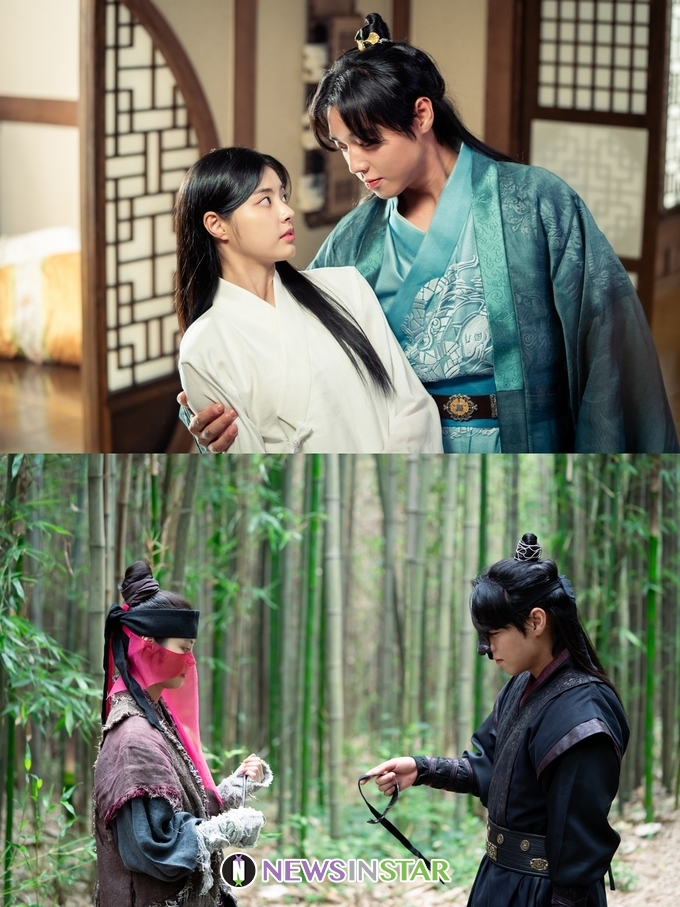 박지훈(사조 현, 악희 역)과 홍예지(연월, 계라 역)의 조합이 기대되는 가운데 오늘 24일(금) 두 주연 배우의 투샷이 담긴 스틸이 처음 공개됐다. 가까이 밀착한 채 시선을 맞추고 있는 두 사람의 모습에서는 벌써부터 심장 떨리는 로맨스가 기다려진다. 각각 가면을 쓰고 복면을 한 채 대치하고 있는 상황임에도 아련하면서도 처절한 서사를 느끼게 한다.