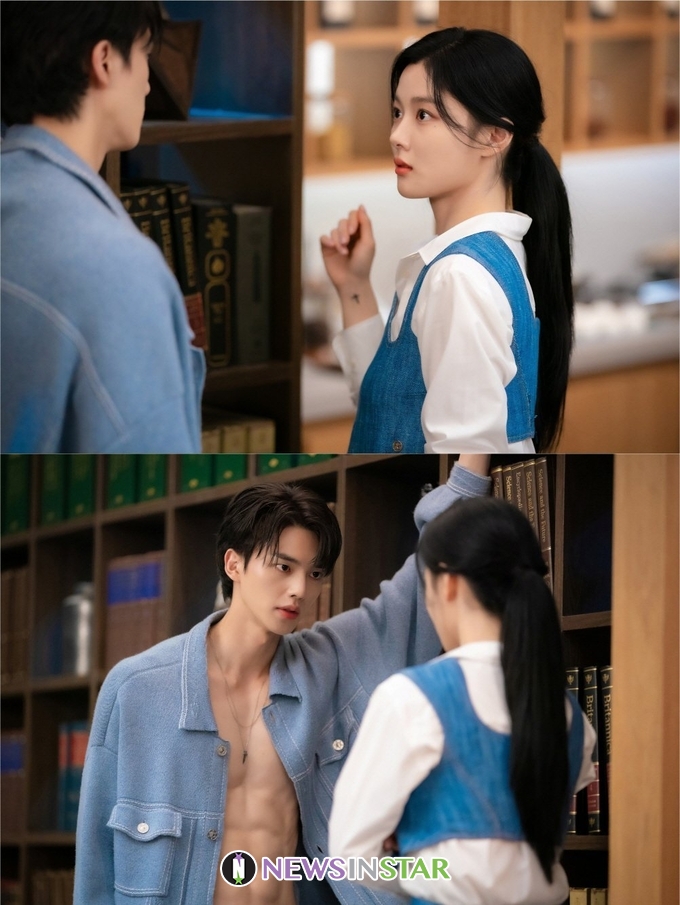 그런 가운데 도도희, 구원 사이에 흐르는 묘한 텐션이 심박수를 높인다. 늦은 밤 ‘선월재단’을 찾은 도도희. 그 앞에는 샤워를 갓 마친 듯 보이는 구원이 아찔하게 서 있다. 훅 치고 들어온 비주얼 공격과 선명한 복근에 눈길을 빼앗긴 도도희의 당황한 얼굴도 흥미롭다. 둘 사이 흐르는 묘한 텐션이 보는 이들마저 숨을 멎게 만든다.