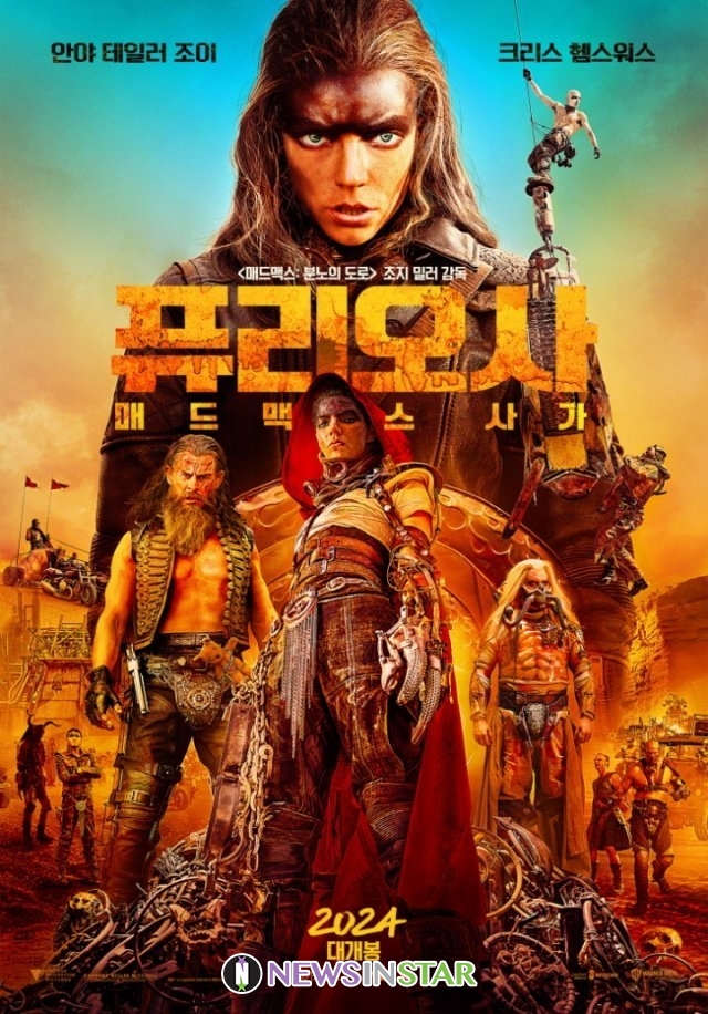 지난 2015년 <매드맥스> 시리즈 30년 만의 후속편으로 세계적인 신드롬을 일으킨 <매드맥스: 분노의 도로>에서 압도적인 존재감으로 전 세계를 사로잡은 사령관 ‘퓨리오사’(샤를리즈 테론)의 과거를 담은 <퓨리오사: 매드맥스 사가> 가 2024년 개봉을 확정하고 강렬한 1차 포스터와 1차 예고편을 공개했다. 공개된 포스터는 <매드맥스> 시리즈의 상징과도 같은 황무지를 연상시키는 황토빛과 그사이 거센 의지를 담은 눈빛만으로 전율을 일으키는 ‘퓨리오사’(안야 테일러 조이)의 모습이 모두가 기다려온 레전드 시리즈의 귀환을 알린다. ‘디멘투스’(크리스 헴스워스), ‘임모탄’, ‘워보이’ 등 다양한 캐릭터들이 생존과 권력을 위해 사투를 벌이는 가운데 <퓨리오사: 매드맥스 사가>는 그 누구보다 강한 면모를 드러내고 있는 ‘퓨리오사’의 서사로 2024년 필람작으로 꼽히고 있다.