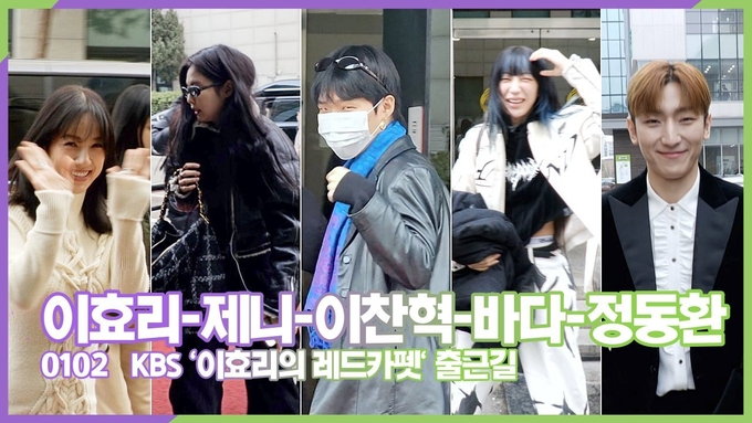 [뉴스인스타 양철수기자] 1월 2일(화) 오후, 서울시 영등포구 여의도 KBS 신관 공개홀에서 진행되는 KBS '더 시즌즈 - 이효리의 레드카펫' 녹화에 출연하기 위해 MC 이효리, 정동환, 가수 제니, 이찬혁, 댄스크루 베베의 바다가 방송국에 도착하고 있다.