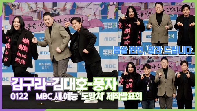 [뉴스인스타 양철수기자] 1월 22일(월) 오후, 서울시 마포구 상암동 MBC 사옥에서 MBC 새 예능 '도망쳐' 손절 대행 서비스 제작발표회가 열려 MC 김구라, 김대호, 풍자가 참석해 포토타임을 갖고 있다.