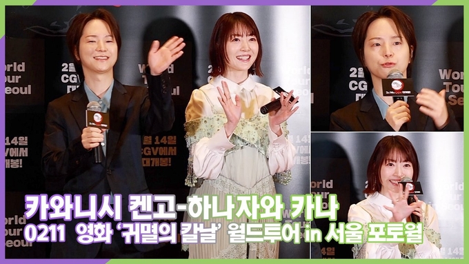 [뉴스인스타 양철수기자] 2월 11일(일) 오후, 서울시 용산구 CGV 용산아이파크몰에서 ‘귀멸의 칼날’ 월드투어 in 서울 포토월 행사가 열려 '토키토 무이치로’ 역의 성우 카와니시 켄고, ‘칸로지 미츠리’ 역의 성우 하나자와 카나가 참석해 인터뷰를 하고 있다.