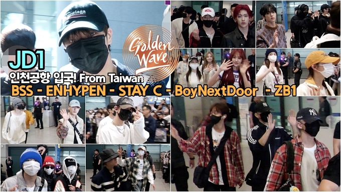 [뉴스인스타 양철수기자] 4월 14일(일) 오후, 인천광역시 중구 운서동 인천국제공항에서 그룹 세븐틴 BSS, ENHYPEN, STAY C, BoyNextDoor, ZB1, 가수 JD1이 JTBC 'GOLDEN WAVE in TAIWAN' 공연을 마치고 입국하고 있다.