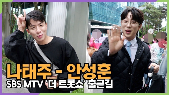 [뉴스인스타 양철수기자] 5월 20일(월) 오후, 서울시 마포구 상암동 SBS 프리즘타워에서 SBS MTV '더 트롯쇼' 생방송이 진행돼 사전 리허설을 위해 가수 나태주, 안성훈이 스튜디오에 도착하고 있다.