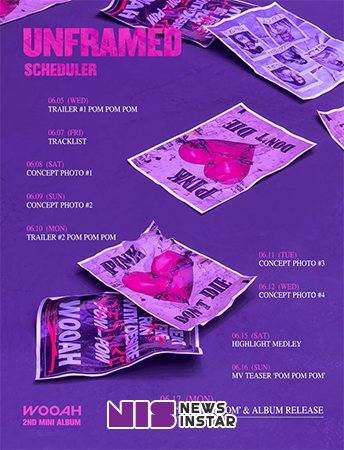 우아는 지난 4일 오후 공식 SNS를 통해 두 번째 미니 앨범 '언프레임드'(UNFRAMED)의 스케줄러 이미지를 공개했다.