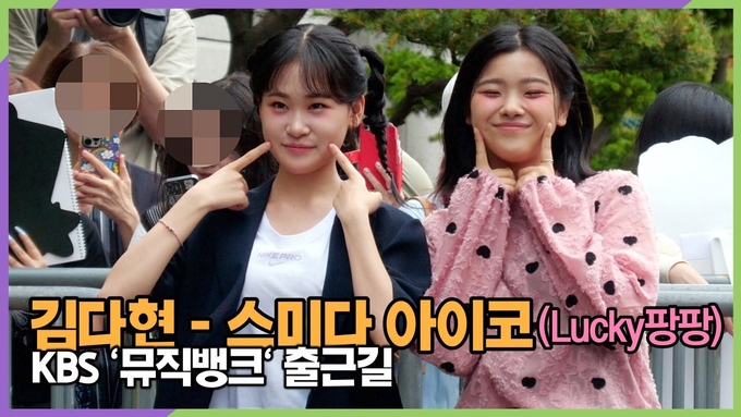 [뉴스인스타 양철수기자] 7월 5일(금) 오전, 서울시 영등포구 여의도 KBS 신관 공개홀에서 진행되는 KBS 'MUSICBANK' 생방송 리허설을 위해 Lucky팡팡 김다현, 스미다 아이코가 방송국에 도착해 포즈를 취하고 있다.