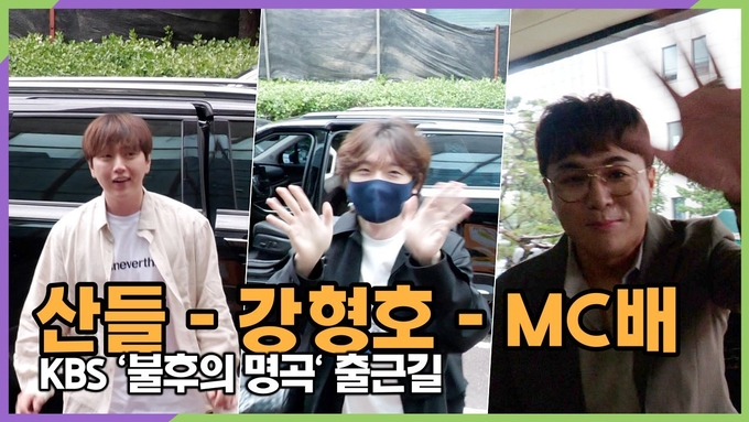 [뉴스인스타 양철수기자] 7월 8일(월) 오후, 서울시 영등포구 여의도 KBS 신관 TV공개홀에서 진행되는 KBS 2TV '불후의 명곡' 녹화를 위해 산들, 강형호, MC배가 방송국에 도착하고 있다.