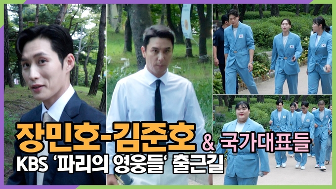 [뉴스인스타 양철수기자] 8월 16일(금) 오후, 서울시 영등포구 여의도공원에서 진행된 KBS '2024 파리 올림픽 기념 국민대축제 - 파리의 영웅들' 생방송 출연을 위해 MC 김준호, 장민호 그리고 올림픽 국가대표 오상욱, 구본길, 박혜정, 우상혁 등이 출근하고 있다.