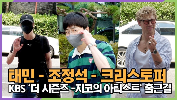 [뉴스인스타 양철수기자] 8월 20일(화) 오후, 서울시 영등포구 여의도 KBS 신관 TV공개홀에서 진행되는 KBS 2TV '더 시즌즈 - 지코의 아티스트' 녹화를 위해 가수 태민, 조정석, 크리스토퍼가 방송국에 도착하고 있다.