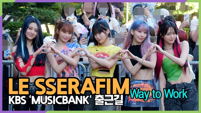 [뉴스인스타 양철수기자] 8월 30일(금) 오전, 서울시 영등포구 여의도 KBS 신관 TV공개홀에서 생방송으로 진행되는 KBS '뮤직뱅크' 리허설을 마치고 그룹 르세라핌(LE SSERAFIM) 이 방송국에 도착해 포토타임을 갖고 있다.