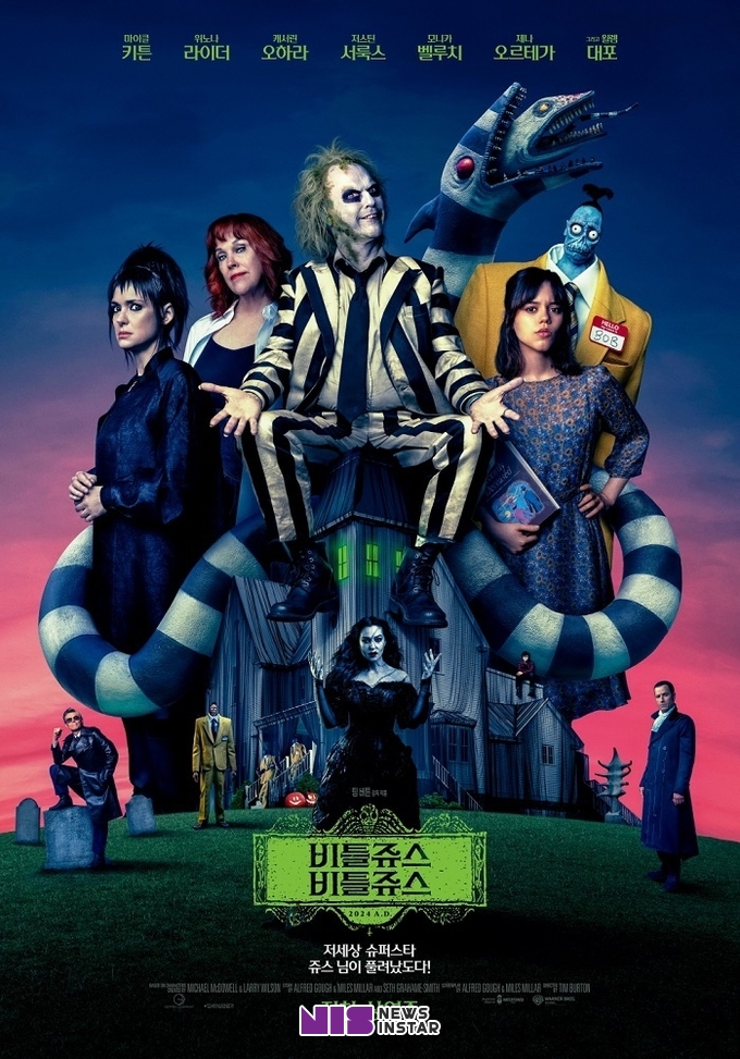 독보적인 판타지 세계관과 기발한 상상력으로 유명한 팀 버튼 감독의 신작 영화 ‘비틀쥬스 비틀쥬스’(수입배급 워너브러더스코리아㈜)가 4일 개봉됐다.