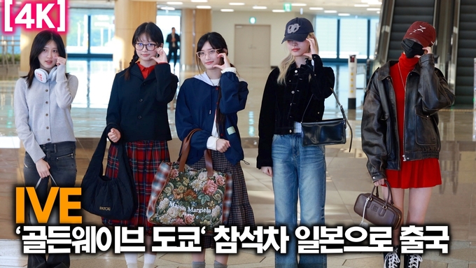[뉴스인스타 양철수기자] 10월 11일(금) 오전, 서울시 강서구 방화동 김포국제공항 국제선터미널에서 '골든웨이브 인 도쿄' 콘서트 참가를 위해 그룹 아이브(IVE) 가을, 장원영, 리즈, 이서, 레이가 출국하고 있다.