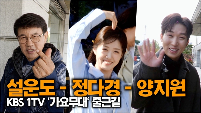 [뉴스인스타 양철수기자] 10월 28일(월) 오후, 서울시 영등포구 여의도 KBS 별관에서 진행되는 KBS 1TV ‘가요무대' 녹화를 위해 가수 설운도, 정다경, 양지원이 방송국에 도착해 포즈를 취하고 있다.