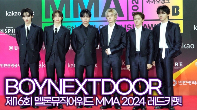 [뉴스인스타 양철수기자] 11월 30일(토) 오후, 인천시 중구 운서동 인스파이어 아레나에서 ‘MMA2024(MELON MUSIC AWARDS)’가 열려 그룹 보이넥스트도어(BOYNEXTDOOR) 성호, 리우, 명재현, 태산, 이한, 운학이 참석해 포토타임을 갖고 있다.