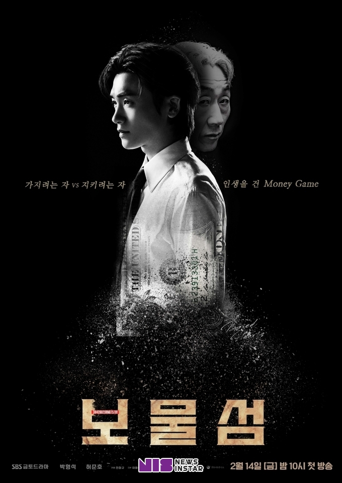 ‘보물섬’ 듀오 포스터는 ‘가지려는 자’ 박형식과 ‘지키려는 자’ 허준호의 한 치의 물러섬 없는 대결을 임팩트 있게 담아냈다. 가지고 말겠다는 야망으로 이글거리는 박형식의 눈빛, 내 손에 쥔 것을 반드시 지켜내겠다는 허준호의 매서운 눈빛이 극명한 대비를 이룬다. 여기에 ‘가지려는 자VS지키려는 자 인생을 건 Money Game’이라는 카피가 더해져 쫀쫀한 긴장감을 더한다.