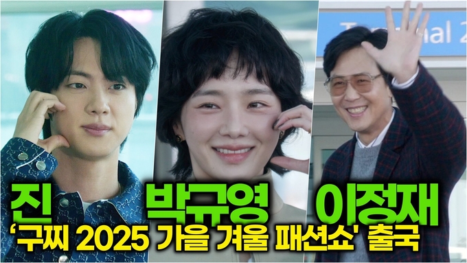 [뉴스인스타 양철수기자] 2월 23일(일) 오전, 인천광역시 중구 운서동 인천국제공항 제2터미널에서 그룹 방탄소년단(BTS) 진, 배우 박규영, 이정재가 '구찌 2025 가을 겨울 패션쇼' 참석을 위해 이탈리아 밀라노로 출국하고 있다.