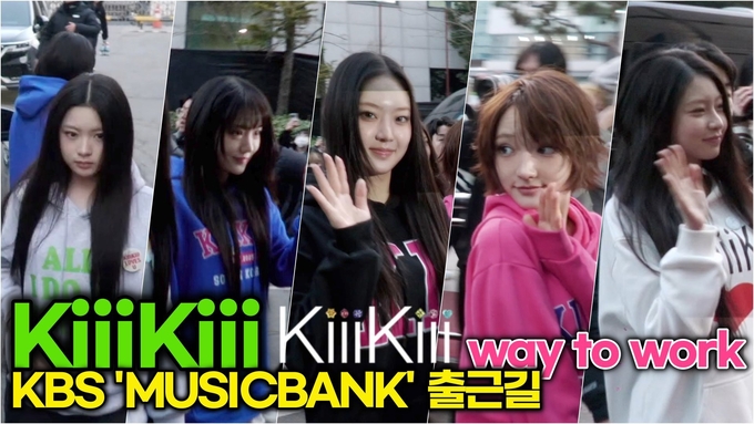 [뉴스인스타 양철수기자] 3월 14일(금) 오후, 서울시 영등포구 여의도 KBS 신관 TV공개홀에서 진행된 KBS 'MUSICBANK' 생방송 출연을 위해 그룹 키키(kiiiKiii) 지유, 이솔, 수이, 하음, 키야가 방송국에 도착하고 있다.