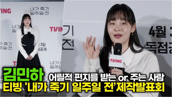 한편 티빙 오리지널 시리즈 '내가 죽기 일주일 전'은 세상을 등지고 청춘을 흘려보내던 ‘희완(김민하 분)’ 앞에 첫사랑 ‘람우(공명 분)’가 저승사자가 되어 나타나며 벌어지는 청춘 판타지 로맨스로 오는 3일 오후 12시 티빙에서 공개된다.