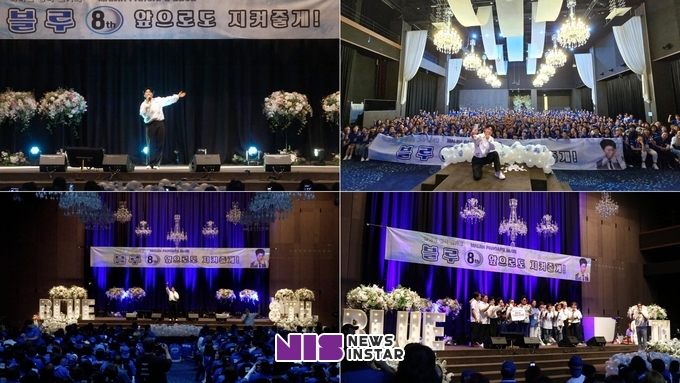이날은 팬카페 ‘블루’의 8주년 생일을 기념하는 뜻깊은 자리. 오후 5시부터 4시간 넘게 이어진 행사에는 마이진의 축하 공연을 비롯해 포토타임, 팬 장기자랑 ‘블루가왕 선발전’, 퀴즈쇼 등 다채로운 프로그램이 펼쳐지며 현장을 뜨겁게 달궜다.