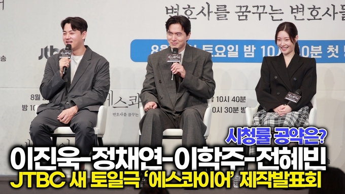 [스타 영상] 이진욱-정채연-김재홍PD, 송무팀의 역할? 시청률 공약은? (JTBC ‘에스콰이어’ 제작발표회)