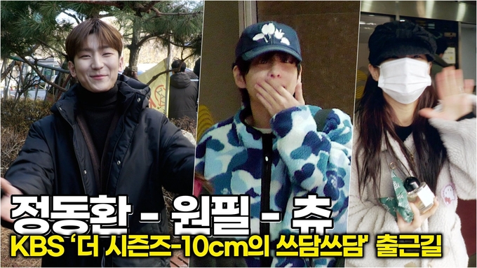 [뉴스인스타 양철수기자] 12월 30일(화) 오후, 서울시 영등포구 여의도 KBS 신관 TV공개홀에서 진행되는 KBS '더 시즌즈 - 10cm의 쓰담쓰담' 출연을 위해 그룹 멜로망스 정동환, 데이식스 원필, 츄가 방송국에 도착하고 있다.