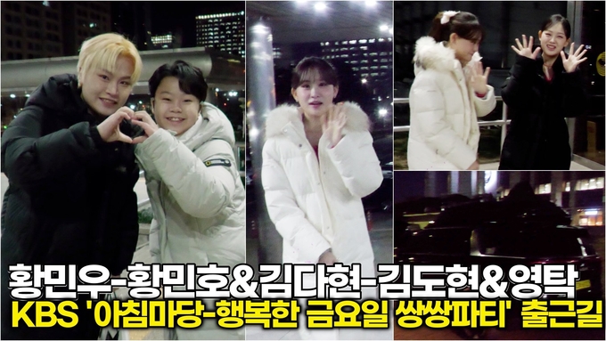 [뉴스인스타 양철수기자] 1월 2일(금) 오전, 서울시 영등포구 여의도 KBS 본관에서 진행되는 KBS 1TV ‘아침마당 - 행복한 금요일 쌍쌍파티’ 생방송 출연을 위해 가수 김연자, 영탁, 김도현, 김다현, 황민우, 황민호가 방송국에 도착하고 있다.