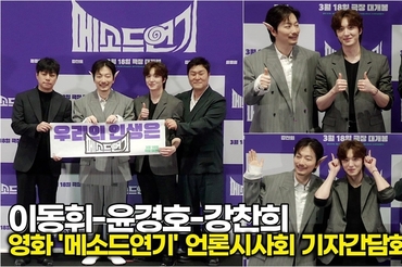 [스타 영상] 이동휘-윤경호-찬희, 묘하게 빠져드는 '병맛과 진지' 사이의 케미 포토타임 (영화 ‘메소드연기’ 언론시사회)