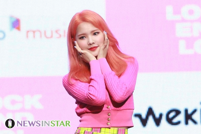14일 오후 서울시 용산구 한남동 블루스퀘어에서 위키미키(Weki Meki)의 두 번째 싱글 앨범 'LOCK END LOL(락앤롤)' 발매 기념 기자 쇼케이스가 열려 리나가 포토타임을 갖고 있다.