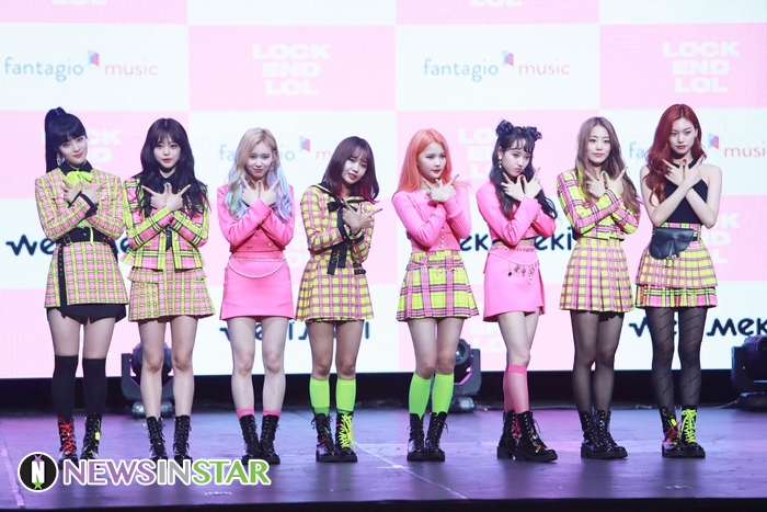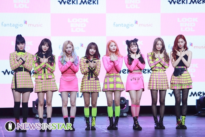 14일 오후 서울시 용산구 한남동 블루스퀘어에서 위키미키(Weki Meki)의 두 번째 싱글 앨범 'LOCK END LOL(락앤롤)' 발매 기념 기자 쇼케이스가 열려 위키미키가 포토타임을 갖고 있다.
