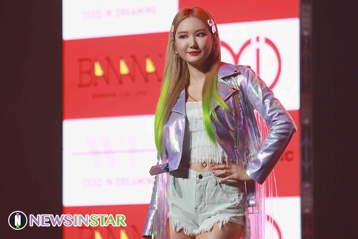 15일 오후 서울시 용산구 한남동 블루스퀘어에서 걸그룹 EXID의 새 미니 앨범 'WE'의 쇼케이스가 열려 LE가 포토타임을 갖고 있다.