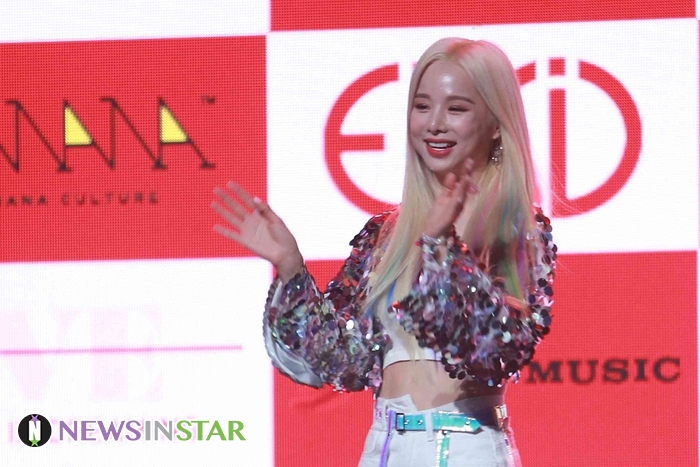 15일 오후 서울시 용산구 한남동 블루스퀘어에서 걸그룹 EXID의 새 미니 앨범 'WE'의 쇼케이스가 열려 솔지가 포토타임을 갖고 있다.